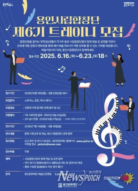 뉴스펀치 탁상훈 기자 | 용인문화재단은 오는 6월 23일까지 ‘용인시립합창단 제6기 트레이니(Trainee)’를 모집한다고 밝혔다.