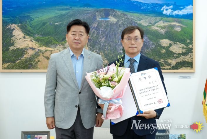 뉴스펀치 천세두 기자 | 오영훈 제주특별자치도지사가 18일 오전 집무실에서 고병기 신임 경제통상진흥원장(63)을 임명했다.