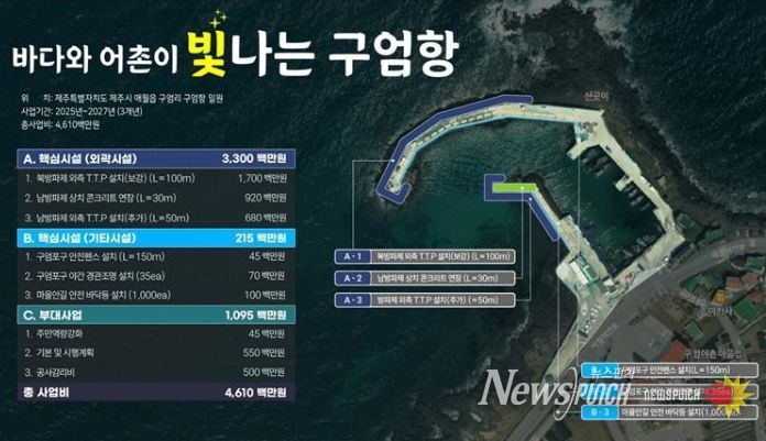 또한 2025년도 해양수산부 공모에 선정된 구엄항 어촌신활력증진사업(유형3)에는 앞으로 3년간 46억 1천만 원이 투입된다. 주요 사업은 북방파제 외측 TTP 설치, 남방파제 연장 및 외측 TTP 설치, 구엄포구 안전펜스 및 야간 경관조명 설치, 마을안길 안전 바닥등 설치 등이다.