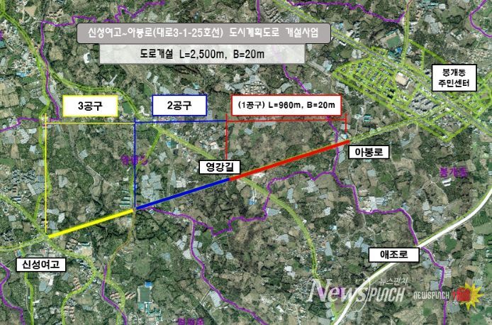 뉴스펀치 천세두 기자 | 제주시는 동부권 교통집중 해소와 도시균형 발전을 위해 신성여고~아봉로(대로3-1-25호선) 도시계획도로 개설사업을 2030년 완공을 목표로 본격 추진한다.