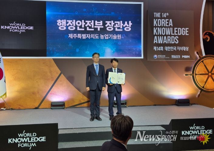 제주도는 ‘현장 데이터 기반 문제 해결형 농업 디지털 대전환(DX) 플랫폼 제주DA(Jeju Digital Agriculture) 구축’ 사업의 혁신성을 인정받아 행안부 주최 ‘제14회 대한민국 지식대상’에서 우수상을 받았다.