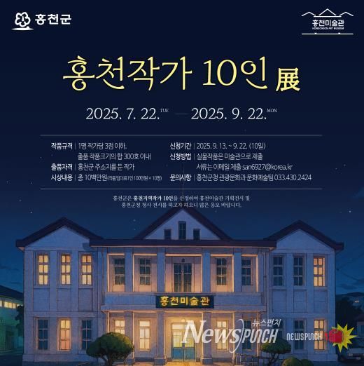 뉴스펀치 김보성 기자 | 홍천군은 “2025 홍천 작가 10인전”에 참가할 작가를 오는 9월 13일부터 22일까지 모집한다.