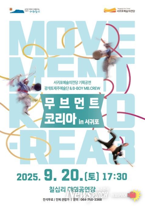 뉴스펀치 천세두 기자 | 서귀포예술의전당은 2025년 9월 20일 오후 5시 30분, 칠십리야외공연장에서 기획공연 '무브먼트 코리아 in 서귀포'를 개최한다.