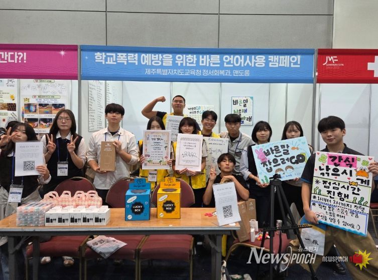뉴스펀치 천세두 기자 | 제주특별자치도교육청은 13일과 14일 양일간 언어문화개선 교육주간을 맞아 제주국제컨벤션센터에서 열리는 제주수학축전과 연계하여 ‘2025년 학교폭력 예방을 위한 바른 언어사용 캠페인’을 운영했다.