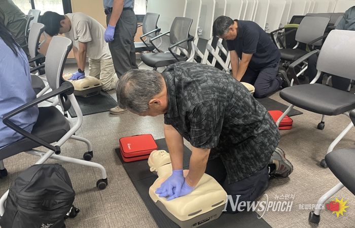참가자들은 교육용 심폐소생술 모형(애니 인형)을 활용해 직접 가슴압박과 AED 사용법을 체험해 응급상황에 대비한 실질적인 대응 능력을 함양했다.