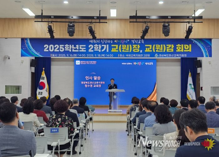 뉴스펀치 김종율 기자 | 경상북도경산교육지원청은 9월 16일과 9월 18일 14:00에 학생교육지원관 2강당에서 유, 초, 중, 고, 특수, 각종학교 교(원)장 및 교(원)감을 대상으로 2025학년도 2학기 회의를 개최했다.
