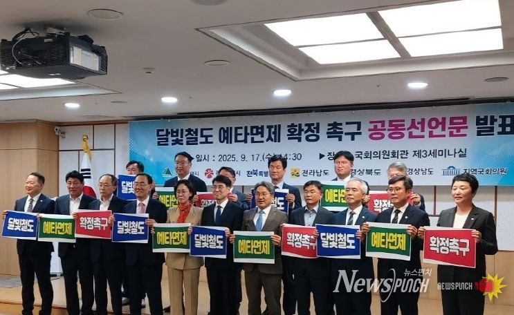 뉴스펀치 김종율 기자 | 영․호남 6개 시․도지사와 달빛철도 경유지역 국회의원들이 17일 국회에서 ‘달빛철도 예비타당성조사 면제 확정을 촉구하는 공동선언’을 발표했다.