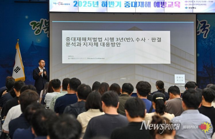 뉴스펀치 김종율 기자 | 경상북도는 17일 도청 화백당에서 도 본청, 시군, 출자·출연기관 직원 등 250여 명을 대상으로 하반기 2025년 중대재해 예방 교육을 했다.