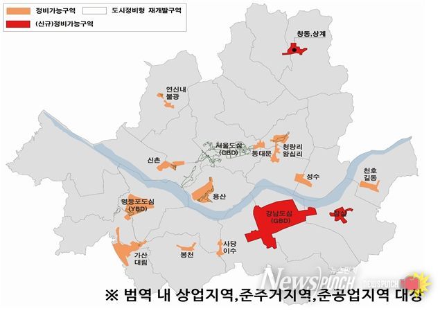 먼저, 도시정비형 재개발사업 대상 지역을 동북권 ‘창동‧상계’와 동남권 ‘강남’, ‘잠실’까지 확대한다. 동북권은 서울아레나 등 문화‧창업거점과 연계한 주변지역 개발 촉진을, 동남권은 대규모 개발을 통한 글로벌기업 유치 등으로 도시경쟁력을 높일 것으로 기대하고 있다.