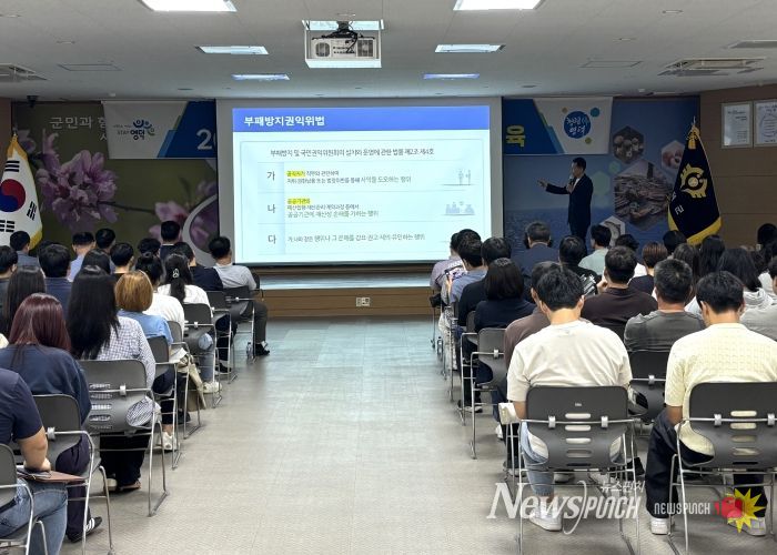 뉴스펀치 김종율 기자 | 영덕군은 추석 연휴를 앞두고 지난 17일 군청 대회의실에서 김광열 영덕군수를 비롯한 4급 이상의 고위공직자, 승진자, 신규 임용자 등을 포함한 200여 명이 참석한 가운데 반부패·청렴 교육을 시행했다..