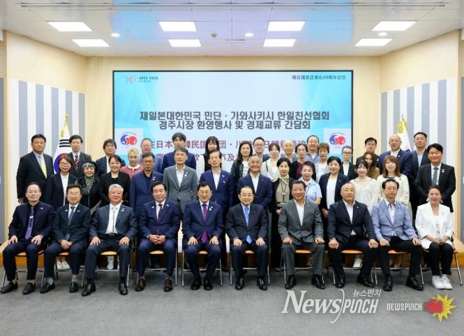 뉴스펀치 김종율 기자 | 경주시는 18일 청사 대회의실에서 일본 민단과 가와사키시 한일친선협회 방문단(회장 다나카 카즈노리) 42명을 맞아 환영행사를 열었다.
