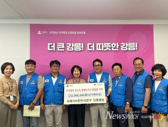 뉴스펀치 김보성 기자 | 국제키비탄한국본부 강릉클럽(회장 김건휘)이 추석을 앞두고 저소득 장애인 가구의 따뜻한 명절나기를 지원하기 위해 200만 원 상당의 생필품을 기탁했다.