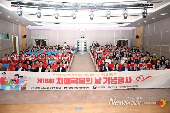 뉴스펀치 김보성 기자 | 평창군 치매안심센터는 19일 오후 1시 평창군문화예술회관 소공연장에서 치매 환자와 가족, 치매 안심마을 주민, 치매 사업 관계자 등 200여 명이 참석한 가운데 제18회 치매 극복의 날 기념식을 개최했다.