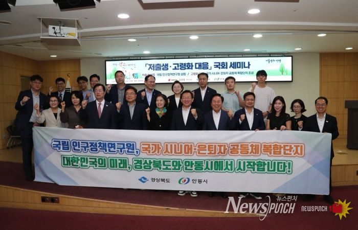 뉴스펀치 김종율 기자 | 경상북도, 안동시, 김형동 국회의원실은 19일 국회의원회관에서 ‘국립 인구정책 연구원 설립’과 ‘국가 시니어‧은퇴자 복합단지 조성’을 주제로 저출생‧고령화 대응 국회 세미나를 개최했다.