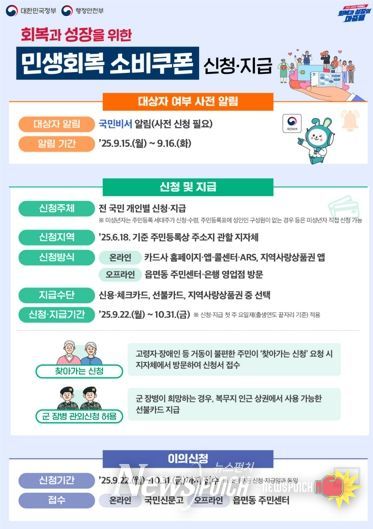 1차 지급에서 전국 98.9%의 높은 신청률을 기록한 데 이어, 이번 2차 지급은 소득 상위 10%를 제외한 국민 90%에게 1인당 10만 원이 지급되며, 지급수단은 신용·체크카드, 포항사랑상품권(모바일·카드형) 중 선택할 수 있다.