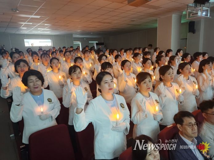 뉴스펀치 김보성 기자 | 송호대학교 간호학과는 19일 교내 창조관 간호비전홀에서 제13회 나이팅게일 선서식을 열고 간호 전문인으로서의 봉사와 헌신을 다짐했다.