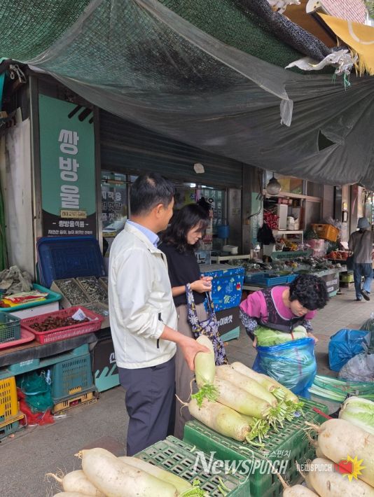 뉴스펀치 김종율 기자 | 김천시 상하수도과에서는 추석 명절을 앞두고 지역 경제에 활력을 불어넣기 위해 22일 황금시장을 방문하여 전통시장 장보기 행사를 실시했다.