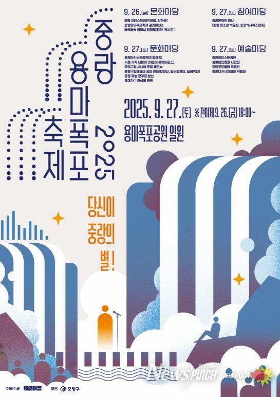 뉴스펀치 김완규 기자 | 중랑구는 오는 9월 26일부터 27일까지 이틀간, 용마폭포공원 일원에서 ‘2025 용마폭포축제’를 개최한다. 올해로 9회째를 맞이한 이번 축제는 주민이 주체가 되어 함께 만들어가는 생활형 문화예술 축제로 자리매김하고 있다.