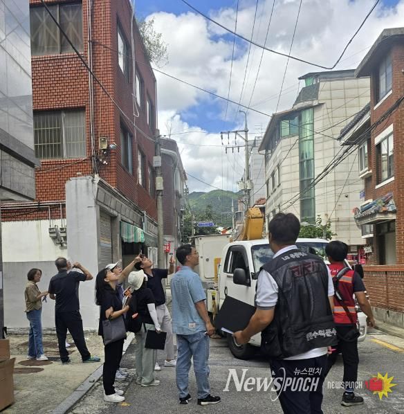 뉴스펀치 김완규 기자 | 서울 도봉구가 지난 9월 18일 관계기관과 함께 방학동 도깨비시장 서측 주택가의 공중선 정비 상태를 점검했다.