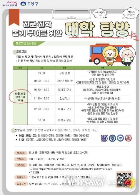 뉴스펀치 김완규 기자 | 서울 도봉구가 지역 내 중‧고등학교 학생에게 ‘진짜 캠퍼스 라이프’를 알려준다.