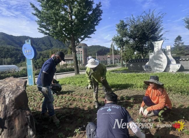 뉴스펀치 김길룡 기자 | 양구군 방산면은 지난 23일 방산면 자율방범대 회원 등 20여 명이 참여한 가운데 방산면 주요 도로변과 화단 등에 메리골드, 페츄니아 등 가을꽃 1만여 본을 식재했다.