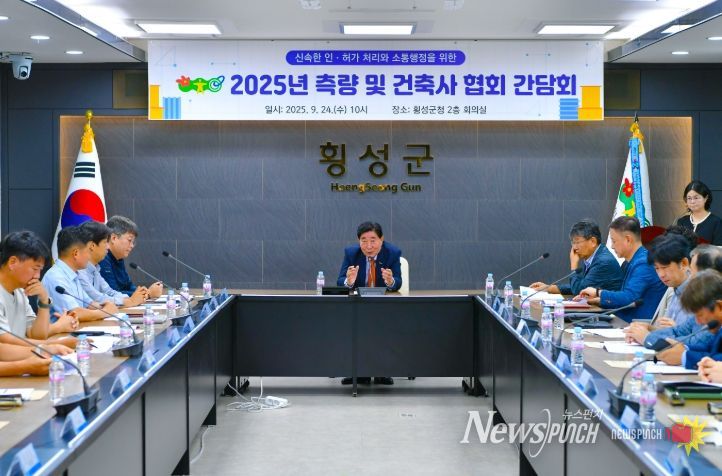 뉴스펀치 김길룡 기자 | 횡성군은 24일 횡성군청 2층 소회의실에서 관내 30여 개 측량사·건축사무소를 대상으로 ‘2025년 측량사·건축사 간담회’를 열고 민원처리 신속도 향상 방안을 논의했다.