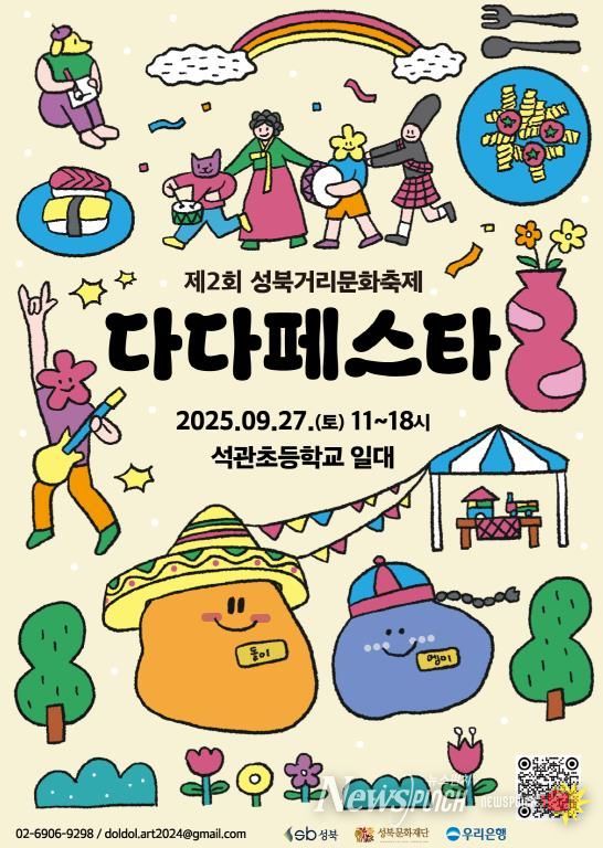 뉴스펀치 김완규 기자 | 서울 성북구가 오는 9월 27일 11시부터 18시까지 서울 석관초등학교 앞 도로와 운동장 일대에서 다문화와 청년이 주인공이 되는 ‘2025 성북거리문화축제 '다다페스타'’를 개최한다. '다다페스타'는 ‘다양한 사람들이 다 같이 즐기는 축제’라는 취지 아래 이주민과 다문화가정, 지역 청년과 대학생 등이 함께 어울리며 문화를 나누는 성북구 대표 거리문화축제다.
