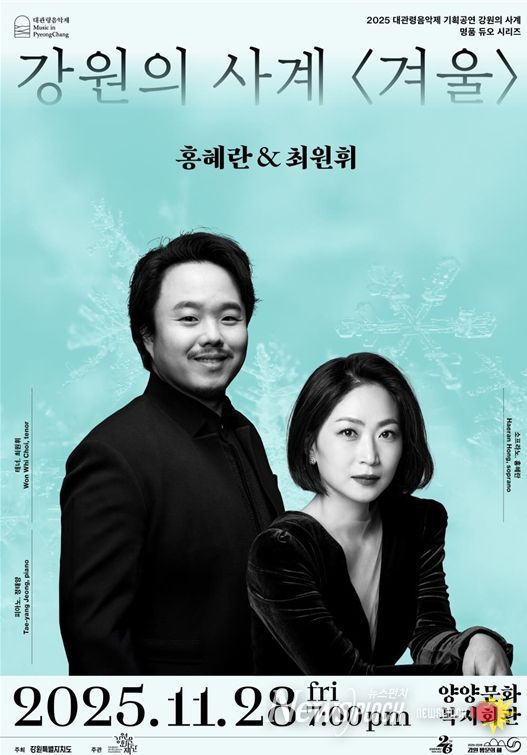 이번 공연은 11월 28일 저녁 7시 양양군문화복지회관에서 열리며, ‘강원의 사계’ 시리즈의 마지막 공연으로 정상급 성악가 부부 소프라노 홍혜란과 테너 최원휘를 초청해 섬세한 감성과 깊이 있는 울림의 하모니로 관객들에게 감동을 선사할 예정이다.