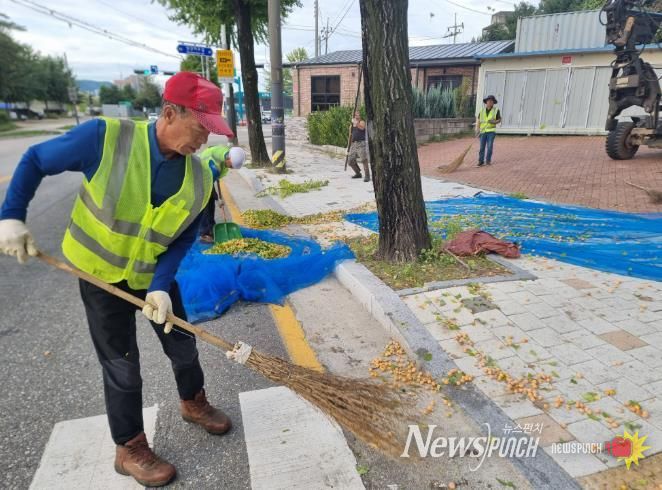 뉴스펀치 김길룡 기자 | 춘천시가 가을철 도심 악취와 안전사고를 예방하기 위해 ‘2025년 가로수 은행 열매 조기 채취 사업’을 다음달 20일까지 진행한다.
