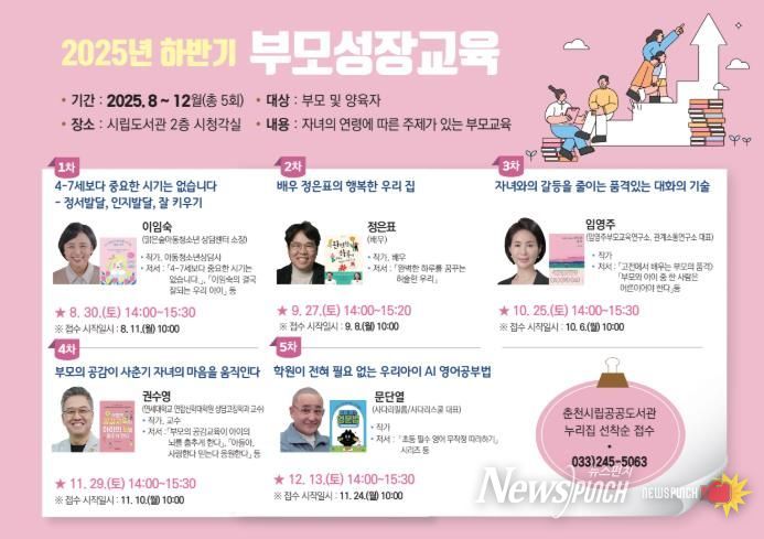 뉴스펀치 김길룡 기자 | 춘천시립도서관이 부모와 양육자를 위한 부모 성장 교육 특강을 연다.