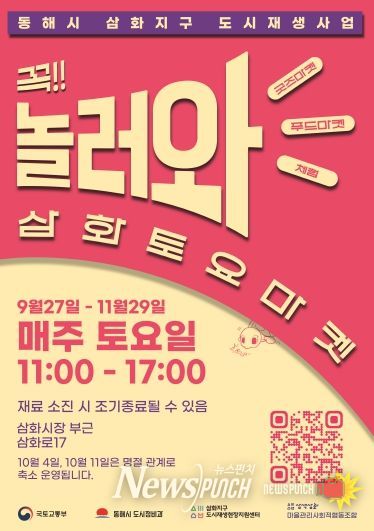 지역고유의 특성과 도시재생 가치를 담아낸 특별한 플리마켓, ‘놀러와, 삼화토요마켓’이 오는 9월 27일부터 11월 29일까지 매주 토요일(오전 11시~오후 5시) 개최된다.