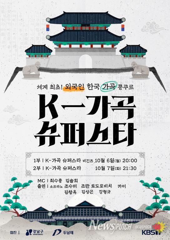 뉴스펀치 김완규 기자 | 꿈이 모이는 도시, 미래를 그리는 강남구가 개청 50주년을 맞아 한국 가곡의 아름다움을 세계 무대에 알리는 글로벌 경연 'K-가곡 슈퍼스타'를 후원한다. 이번 행사는 오는 9월 30일 오후 7시 여의도 KBS홀에서 열리며, 전 세계 11개국 13명의 외국인 성악가가 무대에 올라 한국 가곡을 선보인다.