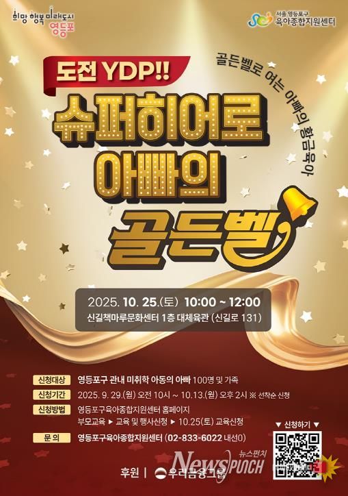 뉴스펀치 김완규 기자 | 영등포구가 아빠들의 육아 지식을 겨루는 ‘도전! 아빠 육아 골든벨’을 개최하고 참가자를 모집한다고 밝혔다.