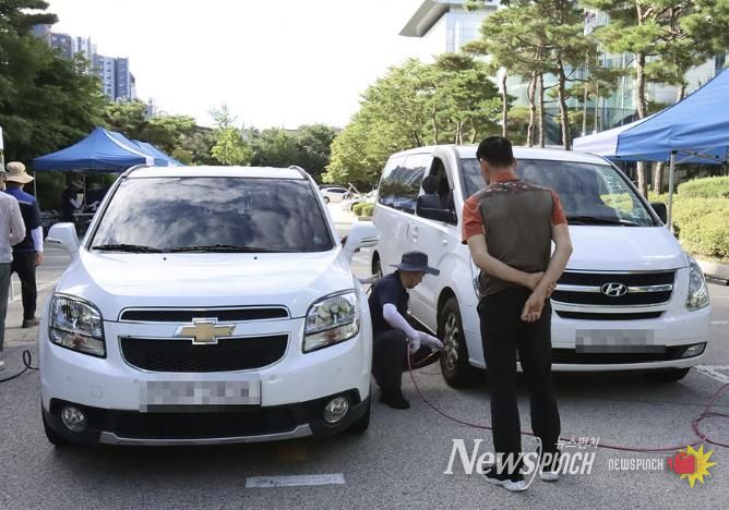 뉴스펀치 김완규 기자 | 서울 도봉구가 지난 9월 21일 서울북부지방검찰청 주차장에서 자동차 무료 안전점검 행사를 진행했다.