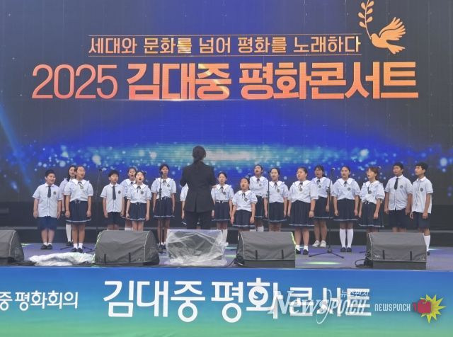 뉴스펀치 손석남 기자 | 전라남도진도교육지원청의 '너나우리'합창단이 9월 24일, 목포 평화광장에서 열린 2025. 김대중평화회의 평화콘서트에 참여했다.