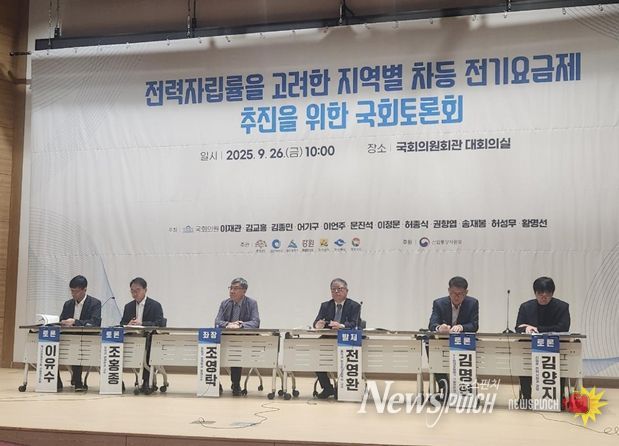 뉴스펀치 김길룡 기자 | 9월 26일 국회의원회관 대회의실에서 '전력자립률을 고려한 지역별 차등 전기요금제' 국회 토론회가 개최됐다.