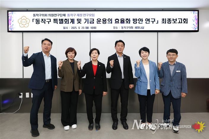 뉴스펀치 김완규 기자 | 서울시 동작구의회 의원 연구단체 ‘동작구 재정 연구모임’은 29일 의회 세미나실에서 ‘동작구 특별회계 및 기금 운용의 효율화 방안 연구’ 용역 최종보고회를 개최했다.