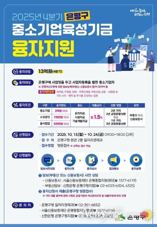 지원 대상은 은평구에 사업장을 둔 중소기업과 소상공인으로, 사업자등록일로부터 6개월 이상인 기업에 한 해 신청할 수 있다.