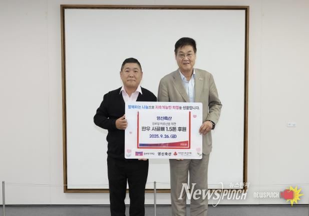 이날 영신축산은 추석 명절을 맞아 어르신들이 건강하고 행복하게 명절을 보내길 바라며 종로복지재단에 한우 사골 1.5톤을 전했다. 이웃사랑의 마음을 담뿍 담은 한우 사골은 관내 경로당에 골고루 배분할 예정이다.