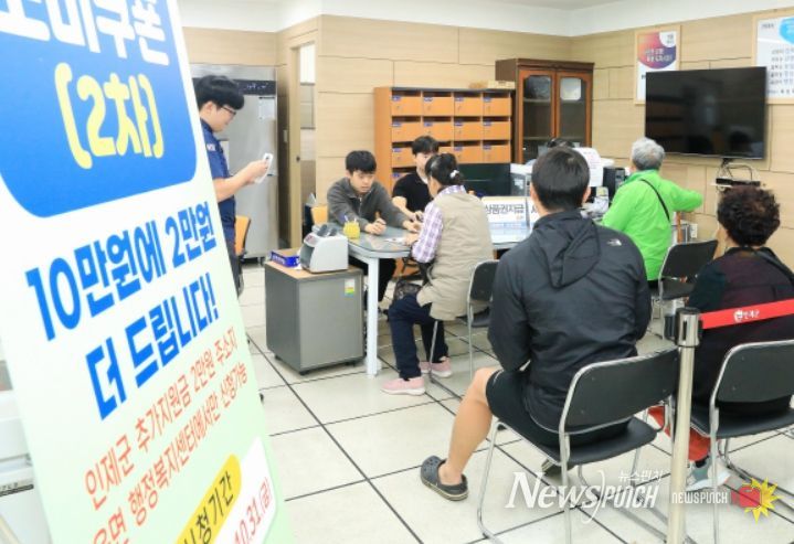 뉴스펀치 김길룡 기자 | 인제군이 2차 민생회복 소비쿠폰 지급을 시작한지 일주일 만에 전체 지급률 58%를 기록했다.