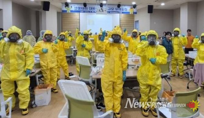 뉴스펀치 김길룡 기자 | 예산군은 지난 25일 생물테러 발생 시 신속하고 체계적인 초동 대응 능력을 강화하기 위해 ‘2025년 생물테러 대비·대응 소규모 모의훈련’을 실시했다.