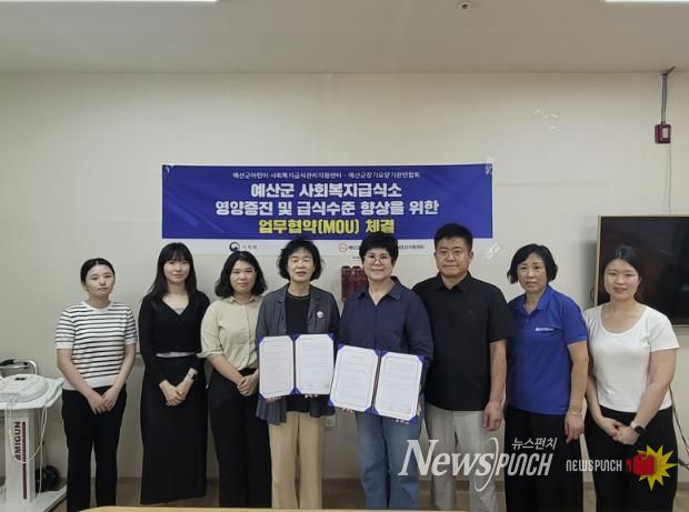 뉴스펀치 김길룡 기자 | 예산군 어린이·사회복지급식관리지원센터는 예산군 장기요양기관연합회와 관내 어르신의 건강 및 영양 증진을 위한 업무협약을 체결했다고 1일 밝혔다.
