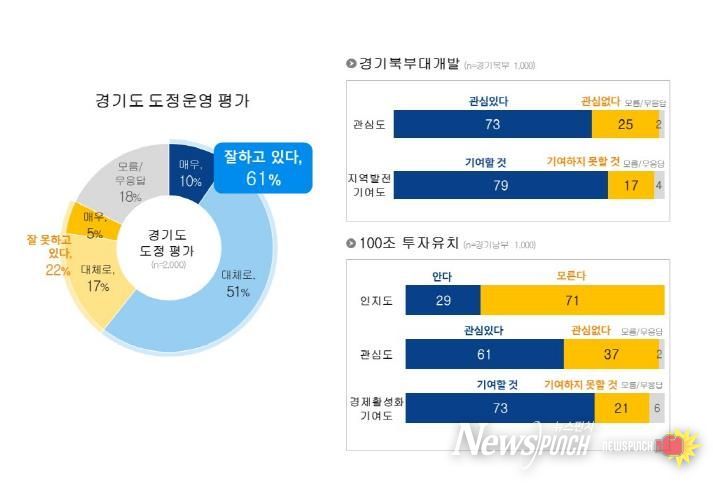 뉴스펀치 탁상훈 기자 | 경기도민 10명 중 6명이 도정 운영을 긍정적으로 평가한 것으로 나타났다.