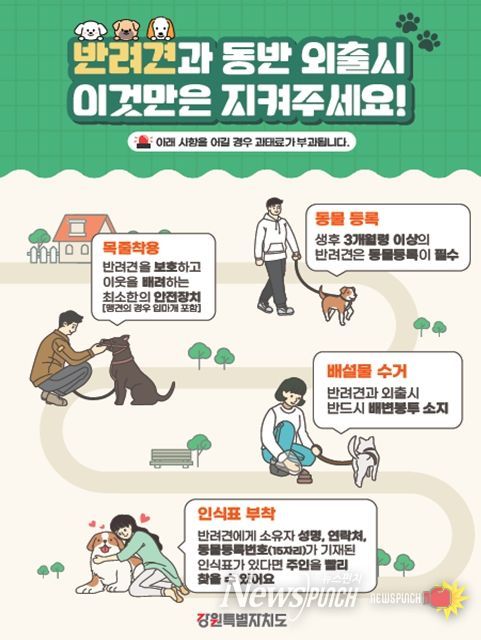 아울러, 반려동물 동행 캠페인은 도내 18개 시군과 강원도수의사회 등과 협력해 추진된다.