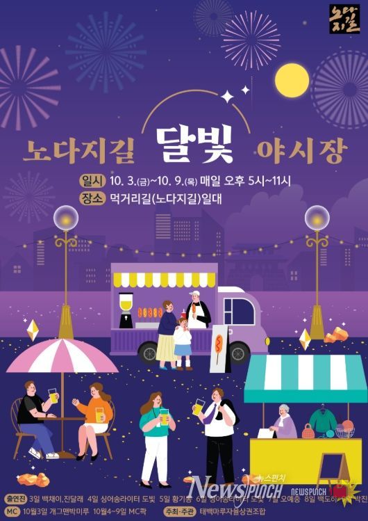 이번 행사는 태백마루자율상권조합 주최·주관으로, 10월 3일부터 10월 9일까지 7일간 매일 오후 5시부터 11시까지 태백역 앞 태평모텔~동원슈퍼 구간에서 진행된다.