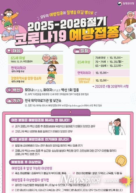 한편, 이번 접종에는 최신 변이주에 대응하는 LP.8.1. 화이자·모더나 백신이 사용되며, 주소지와 관계없이 코로나19 예방접종 위탁의료기관에서 무료로 받을 수 있다.