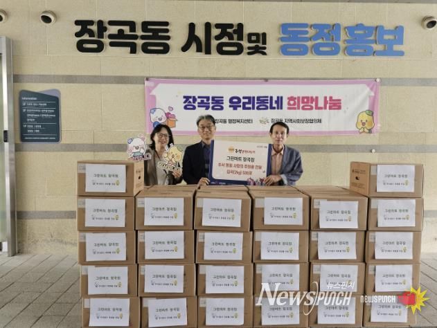 뉴스펀치 탁상훈 기자 | 그린마트 장곡점은 다가오는 추석을 맞아 지난 9월 30일 장곡동 행정복지센터(동장 도영찬)에 잡곡(2kg) 500포를 후원했다.