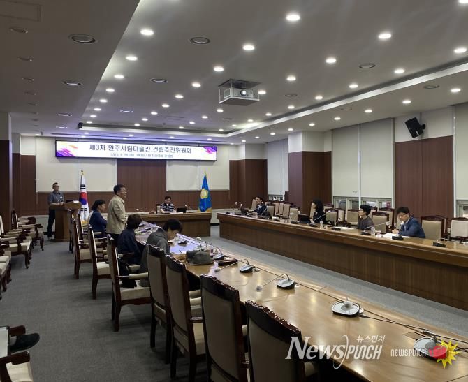 뉴스펀치 김길룡 기자 | 제3차 원주시립미술관 건립추진위원회 회의가 지난 25일 원주시의회 1층 모임방에서 개최됐다. 이번 회의는 시립미술관 건립 현황을 점검하고 향후 계획을 수립하기 위해 열렸으며, 지역 예술계 전문가와 위원들이 참석해 심도 있는 논의를 진행했다.