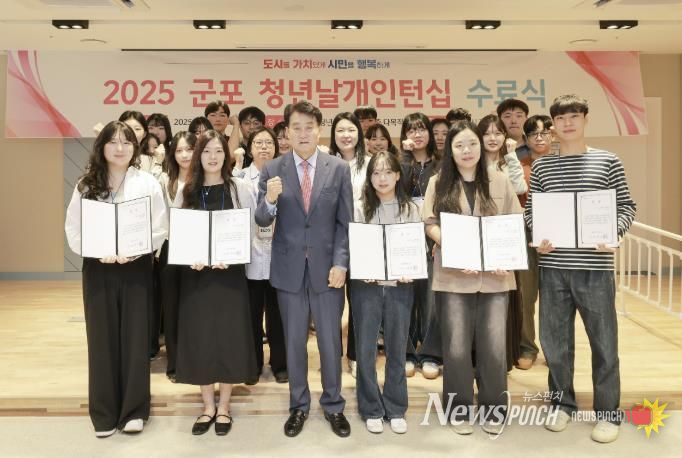 뉴스펀치 탁상훈 기자 | 군포시는 9월 30일 군포 청년날개 인턴십(체험형 공공인턴)을 성공적으로 마친 인턴들의 수료식을 개최했다.