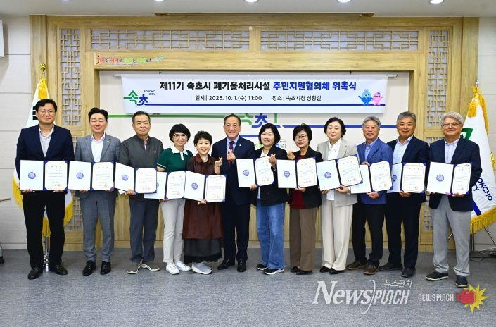 뉴스펀치 김길룡 기자 | 속초시는 10월 1일 시청 상황실에서 제11기 속초시 폐기물처리시설 주민지원협의체 위원 위촉식을 개최했다.